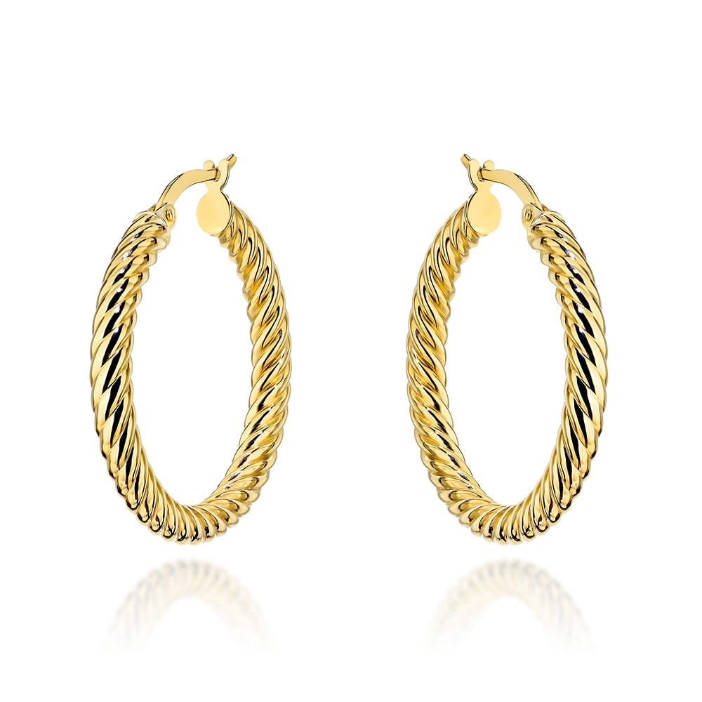 Kolczyki złote kółka o gęstym splocie to subtelny akcent, który podkreśli elegancję każdego stroju. Ich delikatne zdobienie i ponadczasowy design sprawią, że stanie się ulubionym elementem Twojej kolekcji biżuterii.
