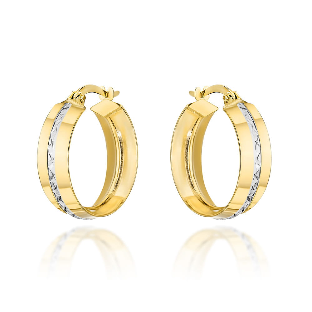 Kolczyki w eleganckich kółkach, wykonane z wysokiej jakości złota i dostępne w dwóch subtelnych odcieniach, dodadzą blasku każdej stylizacji. Dzięki angielskiemu zapięciu zapewniają wygodę i pewność noszenia, a ich ponadczasowy design sprawia, że są idealnym dodatkiem na specjalne okazje i codzienne wyjścia.