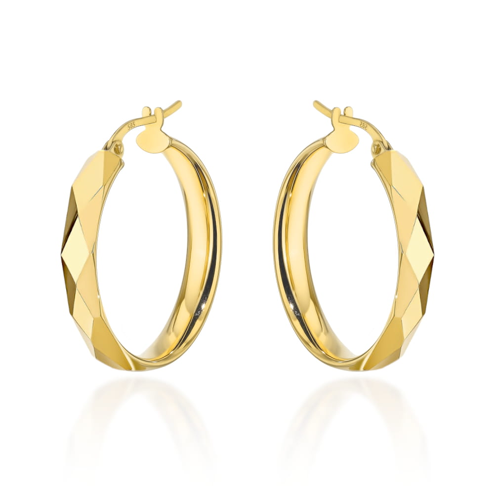 Eleganckie kolczyki w formie złotych kół, zdobione subtelnym diamentowaniem, podkreślą Twój styl i dodadzą blasku każdej stylizacji. Idealne na specjalne okazje lub codzienne noszenie, te finezyjne akcesoria z pewnością przyciągną spojrzenia i sprawią, że poczujesz się wyjątkowo.