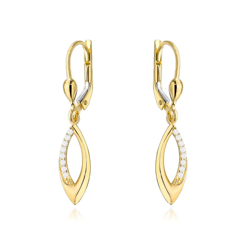 Kolczyki złote łezki z cyrkoniami to elegancki dodatek, który podkreśli Twój wyrafinowany styl. Subtelne, rozświetlające diamentowe imitacje cyrkonii sprawią, że każda okazja stanie się jeszcze bardziej wyjątkowa.