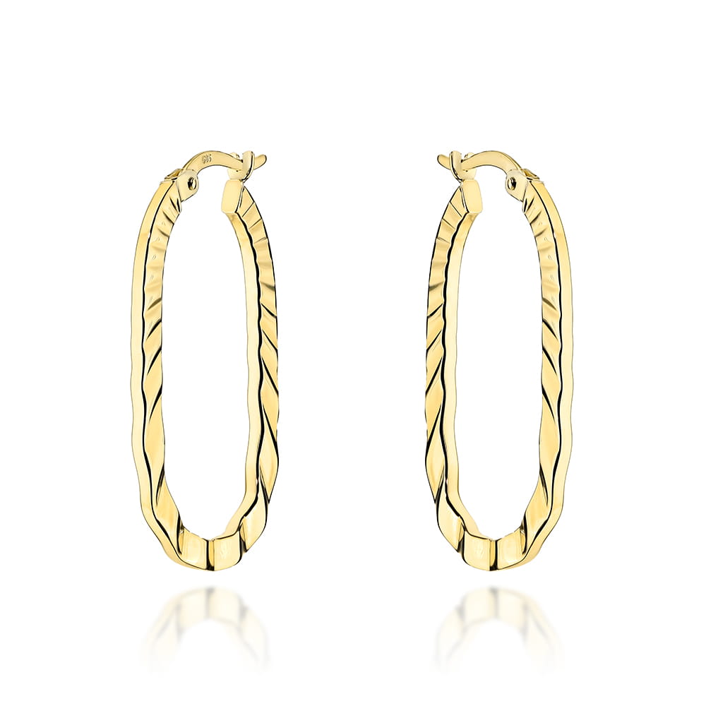 Zanurz się w elegancji, która przyciąga spojrzenia i serca – te złote owale, zdobione subtelnymi detalami po bokach, to połączenie klasy i nowoczesności. Każdy kształt przypomina delikatny wiatr, który otula Twoje uszy, a blask złota rozświetla każdy gest. Niech te kolczyki staną się wyrazem Twojej wyjątkowej osobowości, podkreślając naturalne piękno i luksusowy charakter każdej chwili. Daj się porwać magii, która trwa bez końca – wprost z serca najpiękniejszych jubilerskich historii
