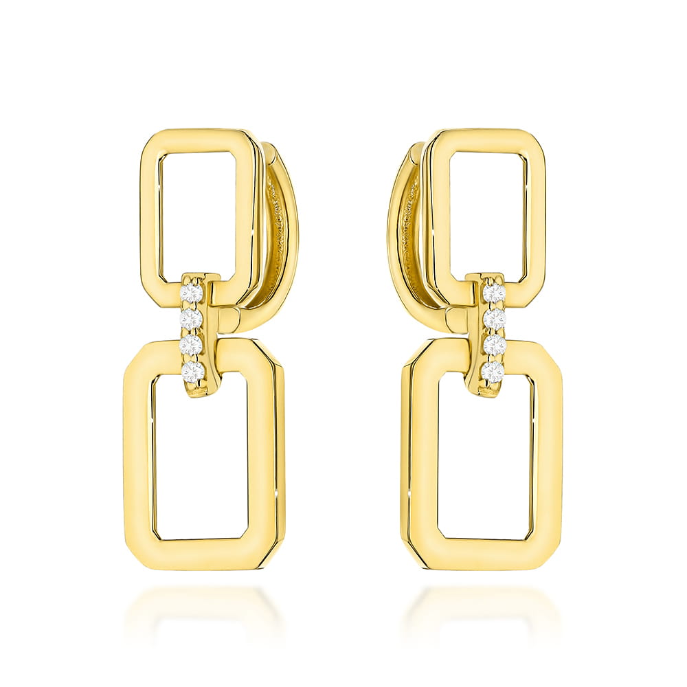 Kolczyki złote prostokąty z cyrkoniami na kreolu to elegancki dodatek, który podkreśli szyk każdej stylizacji. Dzięki wysokiej jakości wykończeniu i blaskowi cyrkonii, będą idealnym wyborem na wieczorne wyjście lub codzienną elegancję.