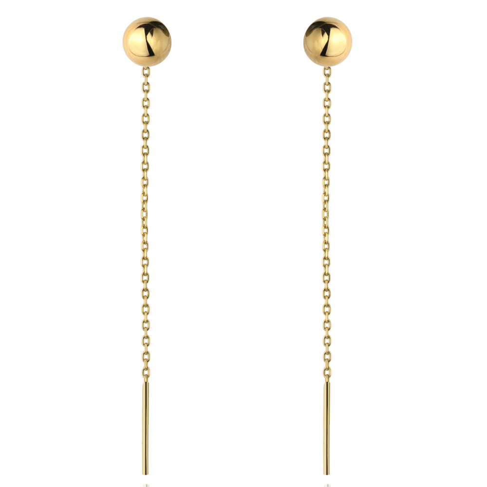 Złote kolczyki przewlekane, w których delikatna gładka kuleczka unosi się jak subtelny oddech elegancji, zapraszają do świata luksusu i wyrafinowanego piękna. Ich lekkość i subtelny połysk sprawiają, że każdy ruch twarzy staje się wyrazem niepowtarzalnej klasy i szyku. Idealne na wieczorne wyjścia czy codzienne spotkania, podkreślają naturalny blask i dodają nieodparcie wdziękowi każdej stylizacji. Pozwól sobie na odrobinę blasku, który trwa bez końca