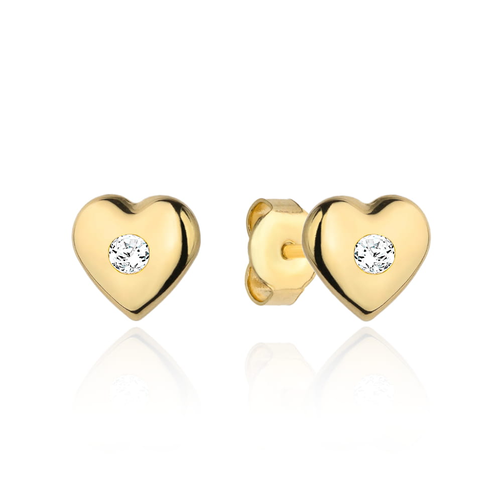 Kolczyki złote serduszka z cyrkonią to subtelny akcent, który podkreśli elegancję każdej stylizacji. Ich delikatna forma i blask cyrkonii sprawią, że poczujesz się wyjątkowo, a jednocześnie przyciągniesz spojrzenia na każdym kroku.