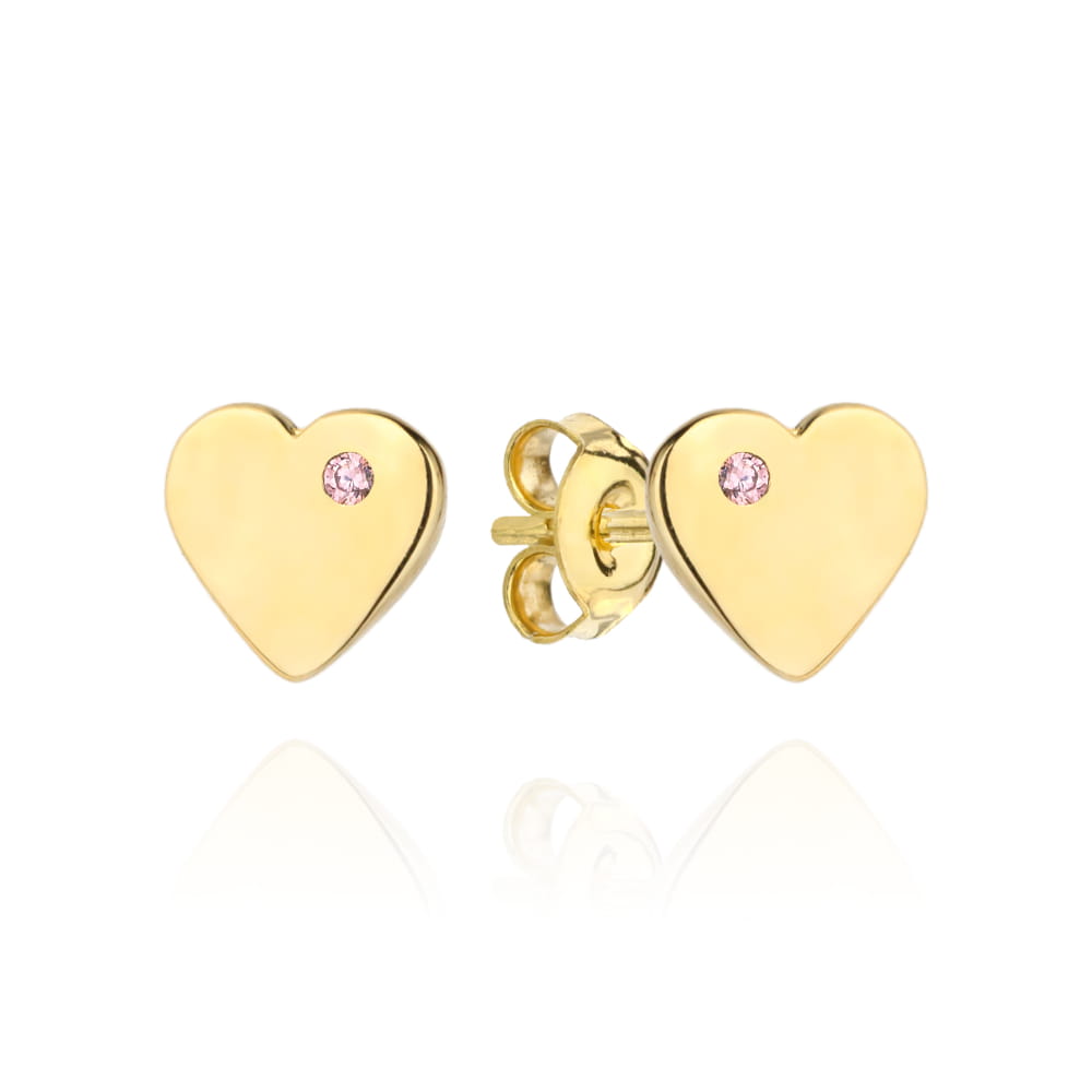 Kolczyki złote serduszko z różową cyrkonią z boku