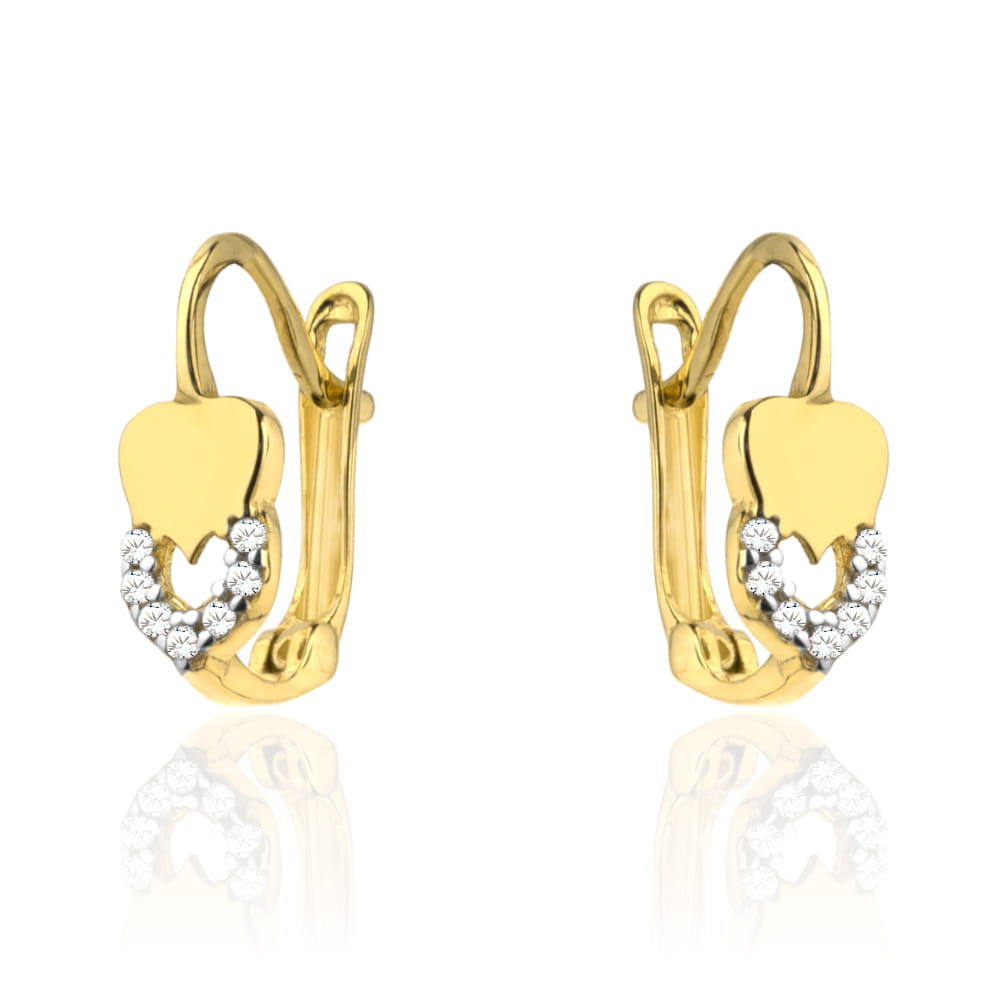 Kolczyki z delikatnym złotym topniejącym sercem i lśniącymi cyrkoniami to wyrafinowana elegancja, która podkreśli Twoją wyjątkowość. Dodaj je do swojej kolekcji i ciesz się niepowtarzalnym blaskiem, który przyciąga spojrzenia na każdą okazję.