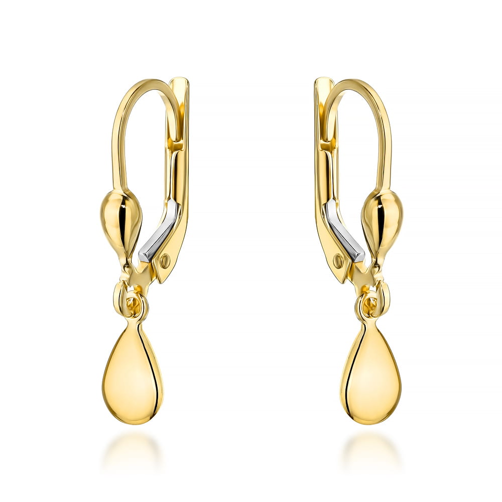 Kolczyki złote wiszące łezki z angielskim zapięciem to subtelny akcent, który podkreśli elegancję każdej stylizacji. Wykonane z wysokiej jakości złota, idealnie łączą klasykę z nowoczesnym designem, zachęcając do wyrażenia własnego stylu.