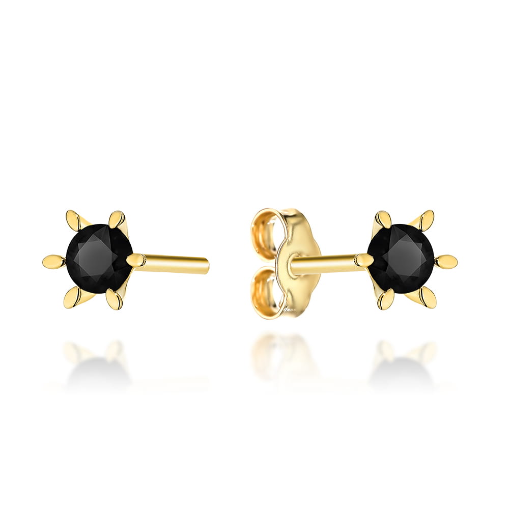Kolczyki złote z czarnym kamieniem w sześciu łapkach to wyrafinowana propozycja dla kobiet ceniących elegancję i nowoczesny design. Delikatna połączenie złota z ciemnym kamieniem podkreśla indywidualny styl, nadając wyrafinowanemu lookowi subtelny akcent.