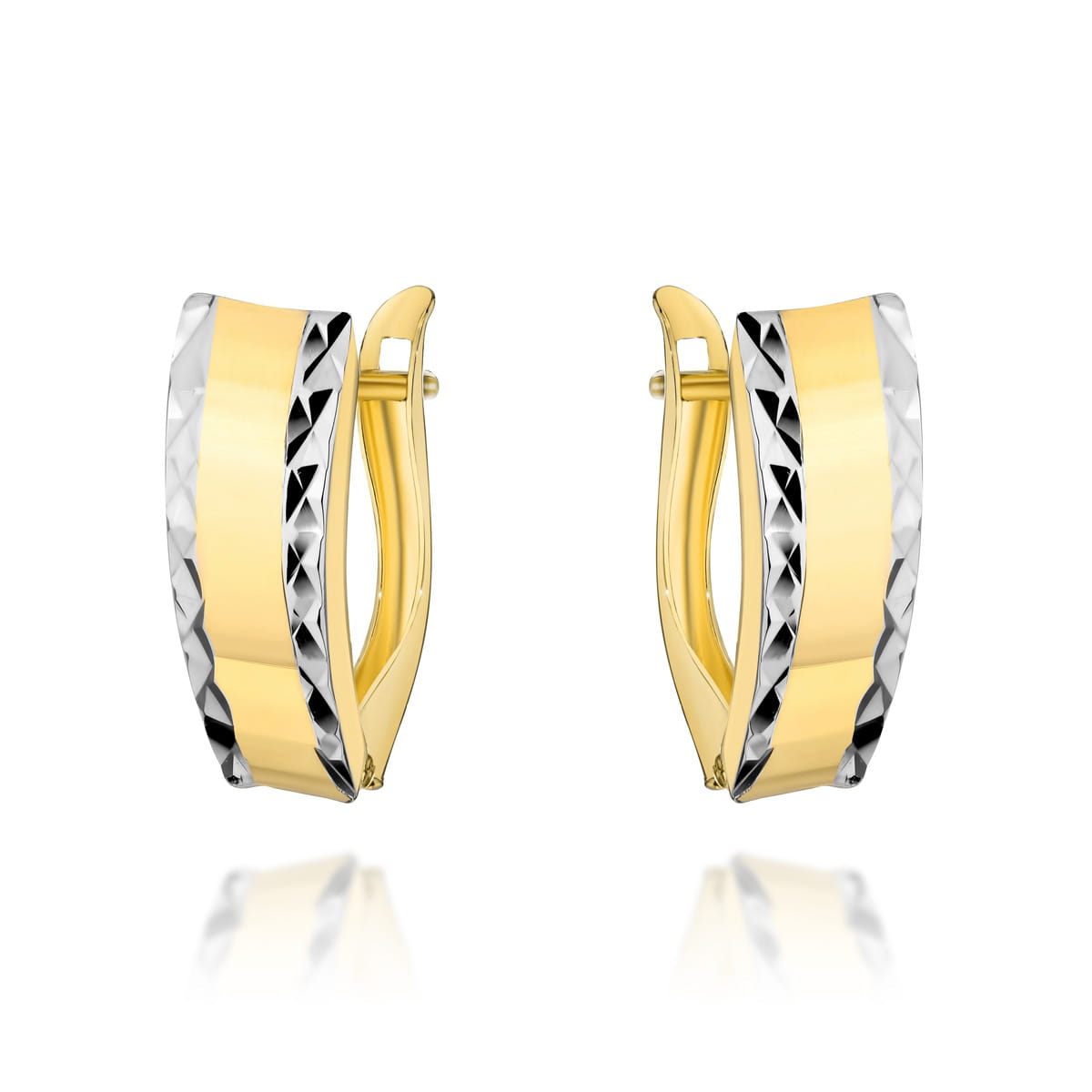 Kolczyki złote z diamentowanymi brzegami i gładkim środkiem