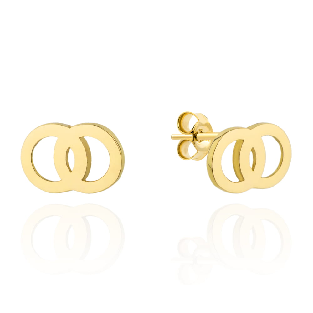Eleganckie kolczyki złote zazębione dwa kółeczka łączą subtelność klasycznych kształtów z nowoczesnym, dynamicznym wzorem. Idealny dodatek do codziennych i wieczorowych stylizacji, który podkreśli Twoją wyjątkowość.