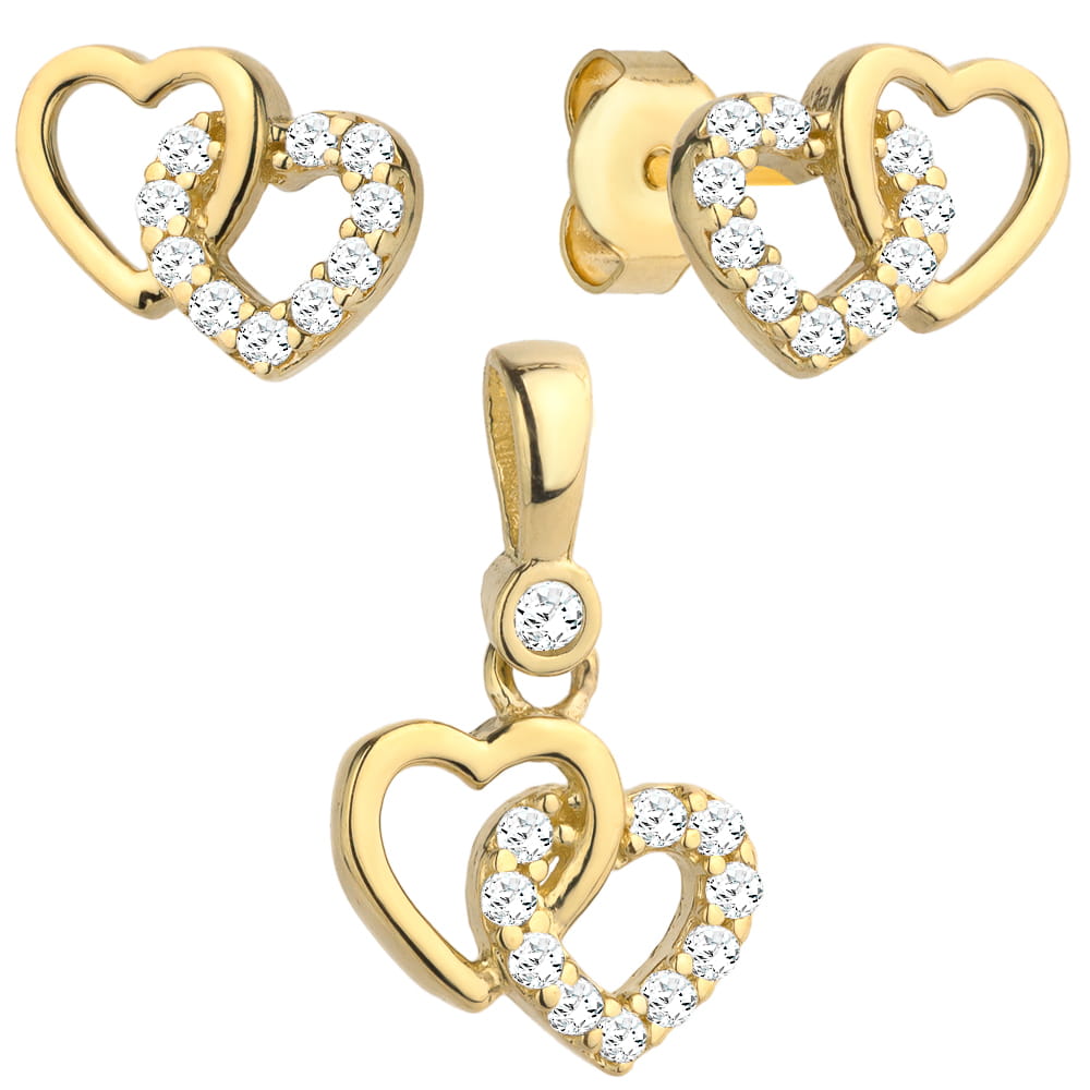 Elegancki komplet kolczyków i zawieszki z dwoma serduszkami to idealny wybór na romantyczne okazje, podkreślający subtelność i wyrafinowanie Twojego stylu. Wykonany z wysokiej jakości materiałów, gwarantuje trwałość i blask, który zachwyci każdego.