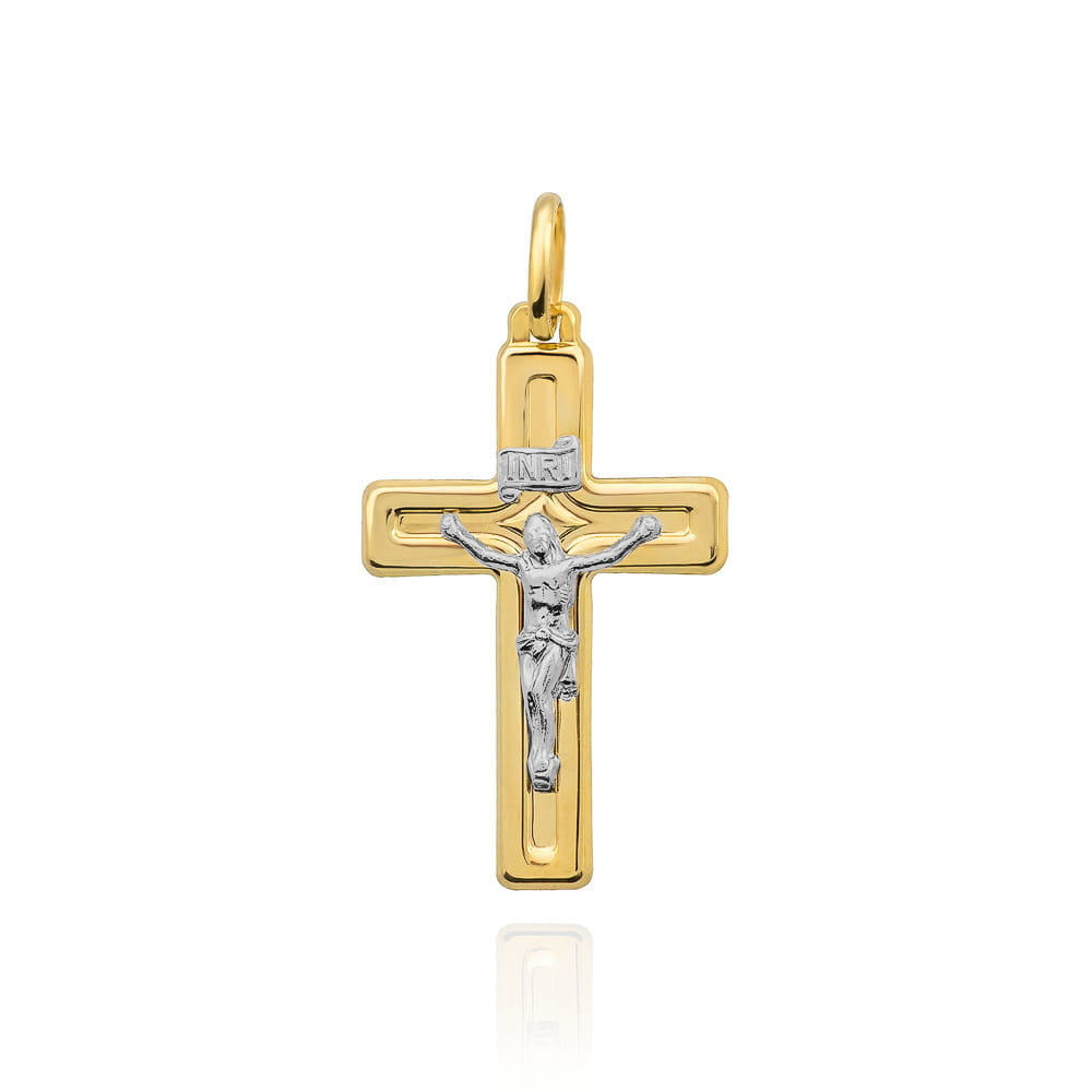 Zachwycający krzyżyk złoty błyszczący, ozdobiony subtelnym białym złocem przedstawiającym Jezusa w ukrzyżowaniu, to elegancki symbol wiary i duchowej siły. Idealny dodatek do codziennej garderoby lub wyjątkowy prezent, podkreśla osobisty styl i głębokie przekonania.