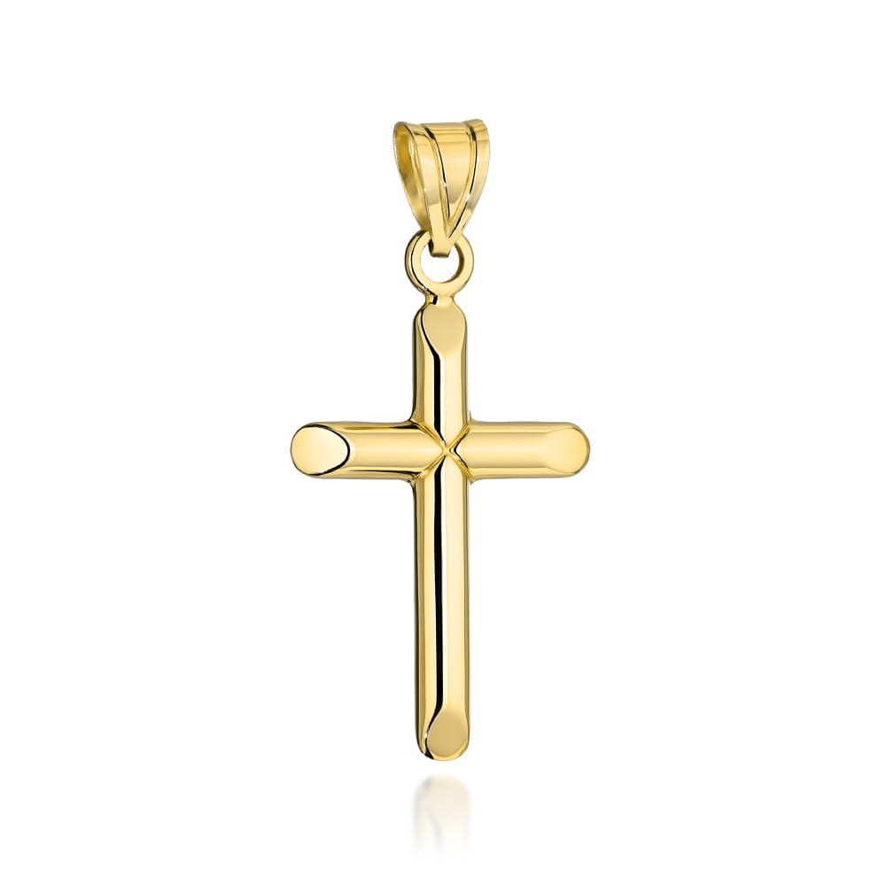 Złoty krzyżyk z ozdobnymi ramionami, idealny dla eleganckich okazji i codziennego noszenia, łączy klasyczne zdobienia z nowoczesnym stylem. Subtelny blask i wyrafinowana forma sprawiają, że stanowi niepowtarzalny akcent każdej stylizacji.