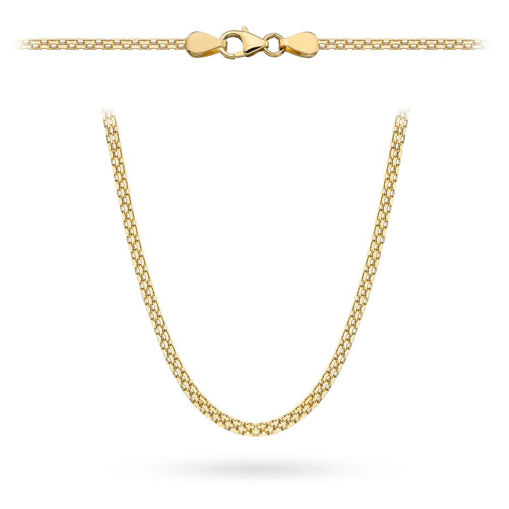 Zanurz się w elegancji, która trwa wiecznie – nasz łańcuch złoty Bismarck o długości 50 cm to kwintesencja luksusu i subtelnej wyrafinowanej klasy. Każdy, 3‑mm szeroki segment błyszczy jak gwiazda na nocnym niebie, tworząc harmonijną całość, która podkreśli Twoją wyjątkowość. Niezwykle lekki i jednocześnie wytrzymały, idealnie komponuje się zarówno z codziennym strojem, jak i z wieczorową elegancją. Pozwól sobie na odrobinę blasku, który rozświetli każdą chwilę i sprawi, że poczujesz się wyjątkowo.