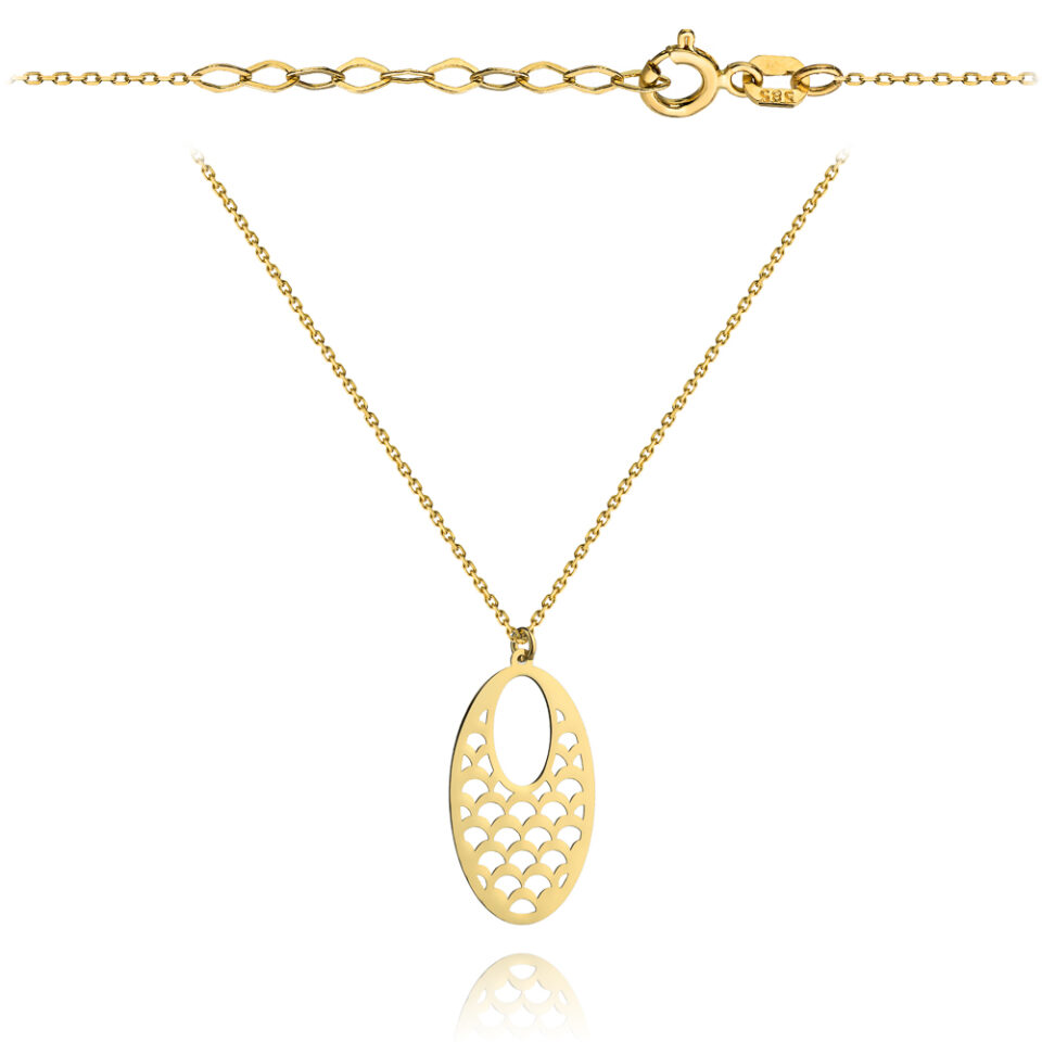 Zachwycający, złoty łańcuszek pr. 585 o długości 45 cm to połączenie klasyki i nowoczesnego szyku. Delikatny splot pancerka, subtelnie diamentowany, dodaje mu elegancji i blasku, który przyciąga spojrzenia. Nacinane elementy wprowadzają nutę wyrafinowanej lekkości, sprawiając, że biżuteria staje się nie tylko ozdobą, ale i wyrazem indywidualnego stylu. Idealny wybór na specjalne okazje czy codzienne wyrażenie luksusu – ten łańcuszek to gwarancja niezapomnianego blasku i wyjątkowego uroku