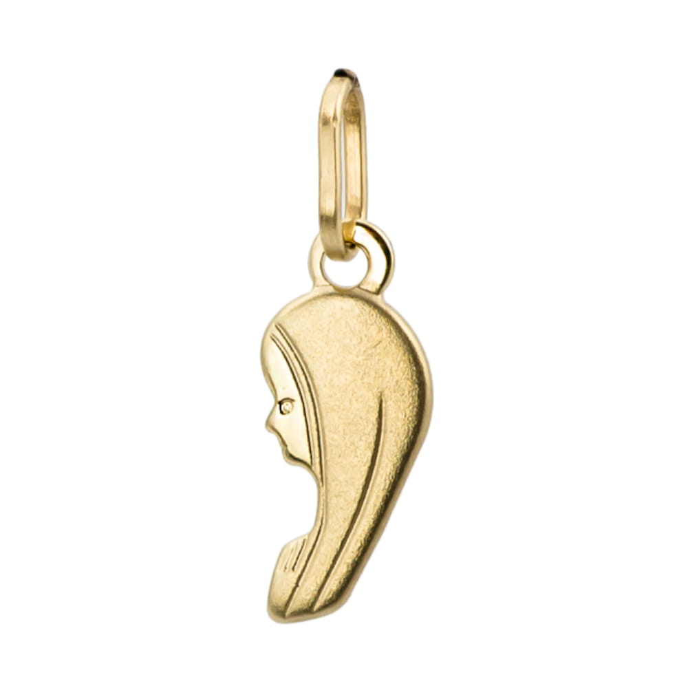Zachwycający złoty medalik z wizerunkiem Madonny, skierowany w lewo, stanowi elegancki akcent dla każdej stylizacji. Delikatna zawieszka dodaje klasy i subtelności, idealna na prezent lub osobiste wyrażenie wiary.