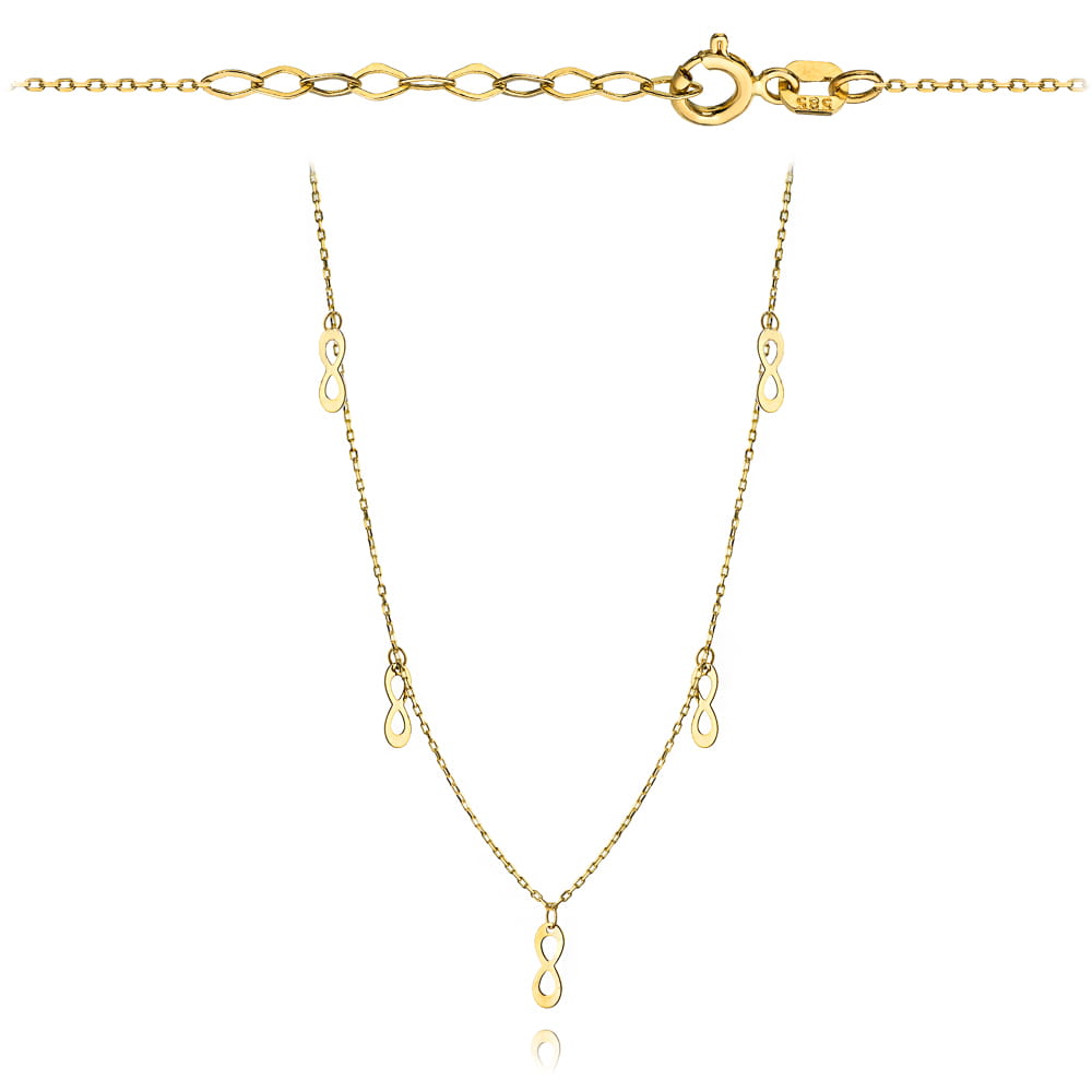 Elegancki naszyjnik z pięcioma zawieszonymi nieskończonościami, który podkreśla nieograniczoną elegancję i ponadczasowy styl. Idealny wybór dla osób ceniących subtelność oraz symboliczny wyraz miłości i trwałości.