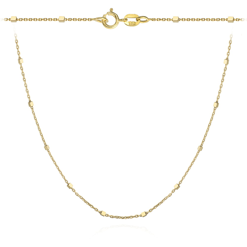 Delikatny naszyjnik z 50‑centymetrowych złotych kosteczek, który subtelnie podkreśla elegancję każdego stroju. Idealny wybór dla miłośniczek minimalistycznego stylu, gwarantujący ponadczasowy blask i wyjątkową lekkość.