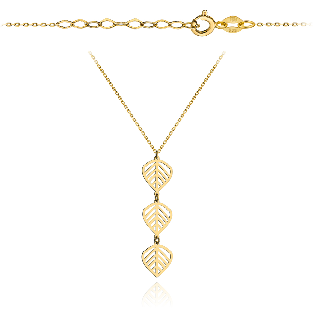 Delikatny naszyjnik z wiszącymi trzema złotymi listkami, który subtelnie podkreśla naturalne piękno każdej stylizacji. Idealny wybór dla kobiet ceniących elegancję i ponadczasowy design, który zachwyci każdego odbiorcę.