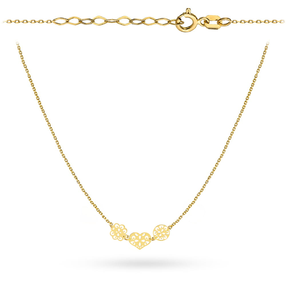 Napisz pierwszą opinię o „Naszyjnik złoty ażurowe serce, kwiatek i kółko”