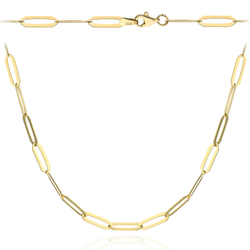 Elegancki, złoty naszyjnik z długimi, dużymi ogniwami o długości 42 cm – idealny do podkreślenia klasy i szyku, a jednocześnie lekki i wygodny w noszeniu. Nasz naszyjnik to połączenie nowoczesnego designu z ponadczasową elegancją, które sprawi, że każda stylizacja nabierze wyjątkowego blasku.