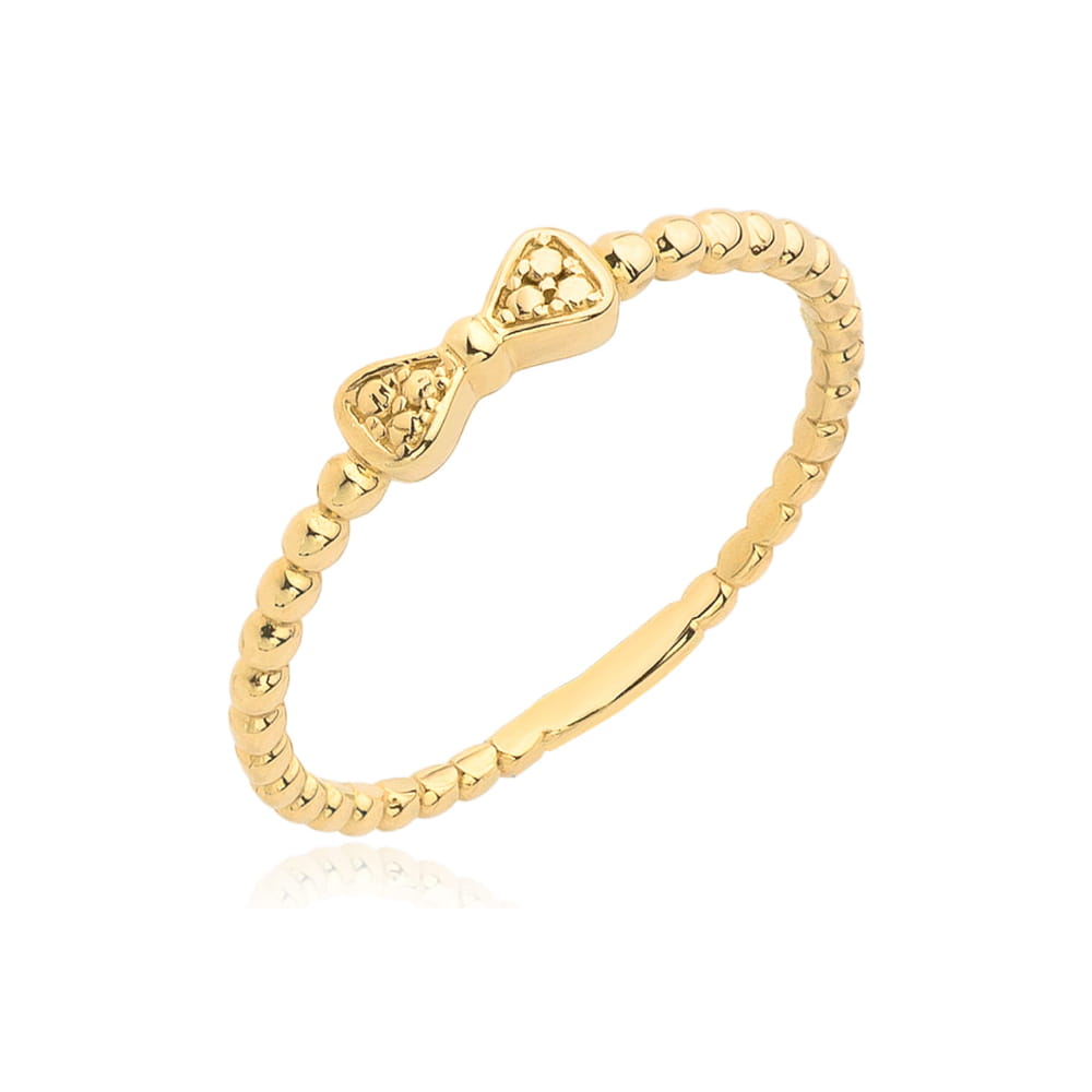 Delikatny pierścionek z złotymi kulkami i elegancką kokardą, który dodaje subtelnego blasku każdej stylizacji. Idealny wybór dla kobiet ceniących klasykę i wyrafinowaną prostotę, gwarantujący trwałość i wyjątkowy design.