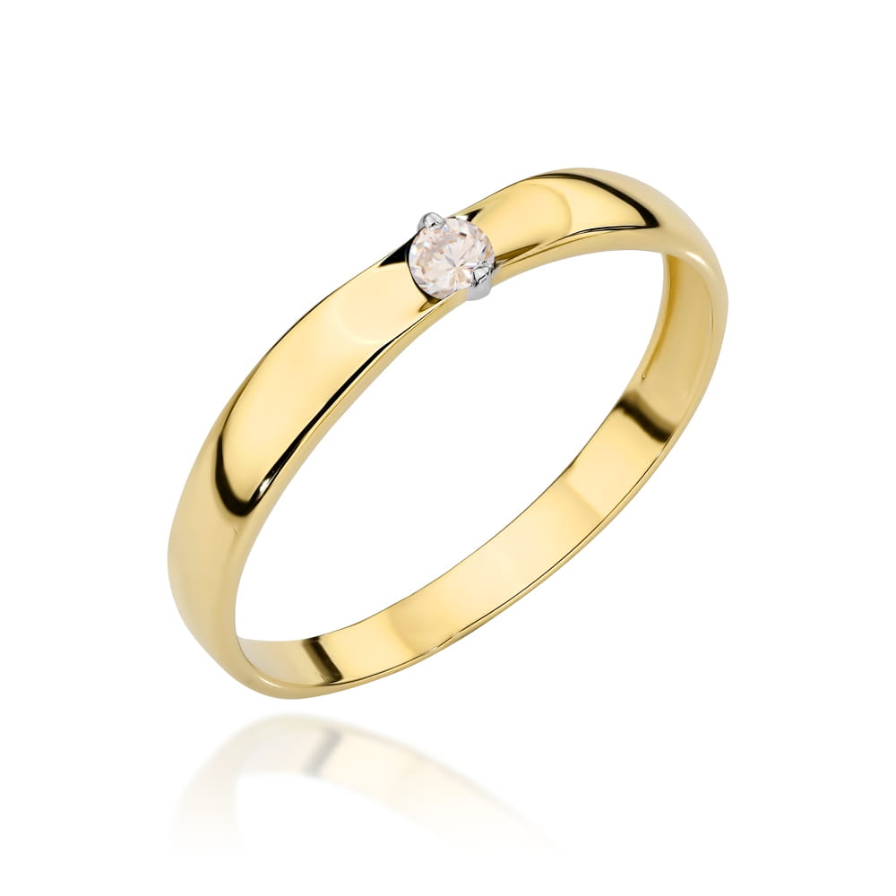 Klasyczny złoty pierścionek z białym kamieniem to elegancki akcent, który podkreśli Twój styl i wyrafinowanie. Idealny na każdą okazję, zapewniając niepowtarzalne połączenie blasku i subtelności.