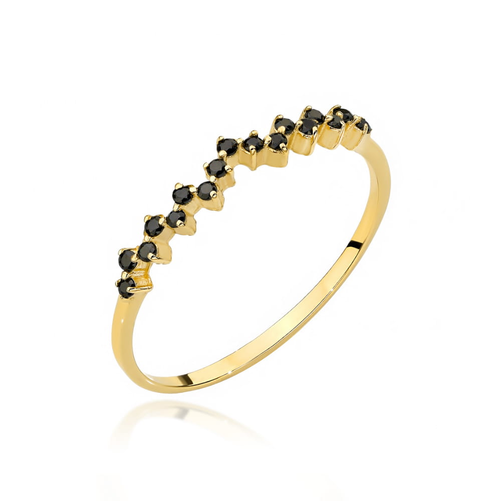 Złoty pierścionek z czarnymi cyrkoniami to elegancki akcent, który podkreśli Twój styl i dodaje wyrafinowanego blasku. Idealny na każdą okazję, gwarantuje trwałość i niezwykły kontrast między złotem a głębokim, czarnym kolorem kamieni.