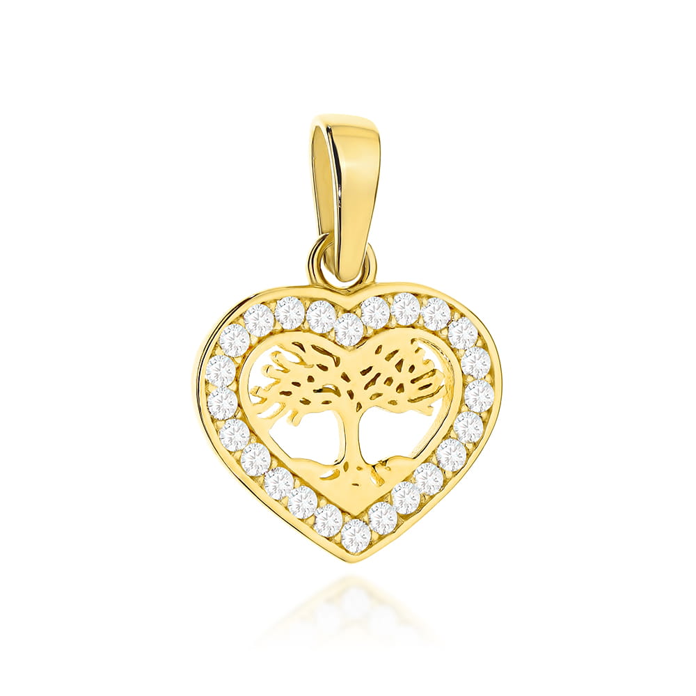 Zawieszka w stylu złota drzewko szczęścia, wzorzysta serduszkowa formą oraz delikatne cyrkonie tworzą elegancką biżuterię, która dodaje uroku każdej stylizacji. Idealna na prezent lub do codziennego noszenia, przyciąga uwagę swoim naturalnym blaskiem i subtelnością.