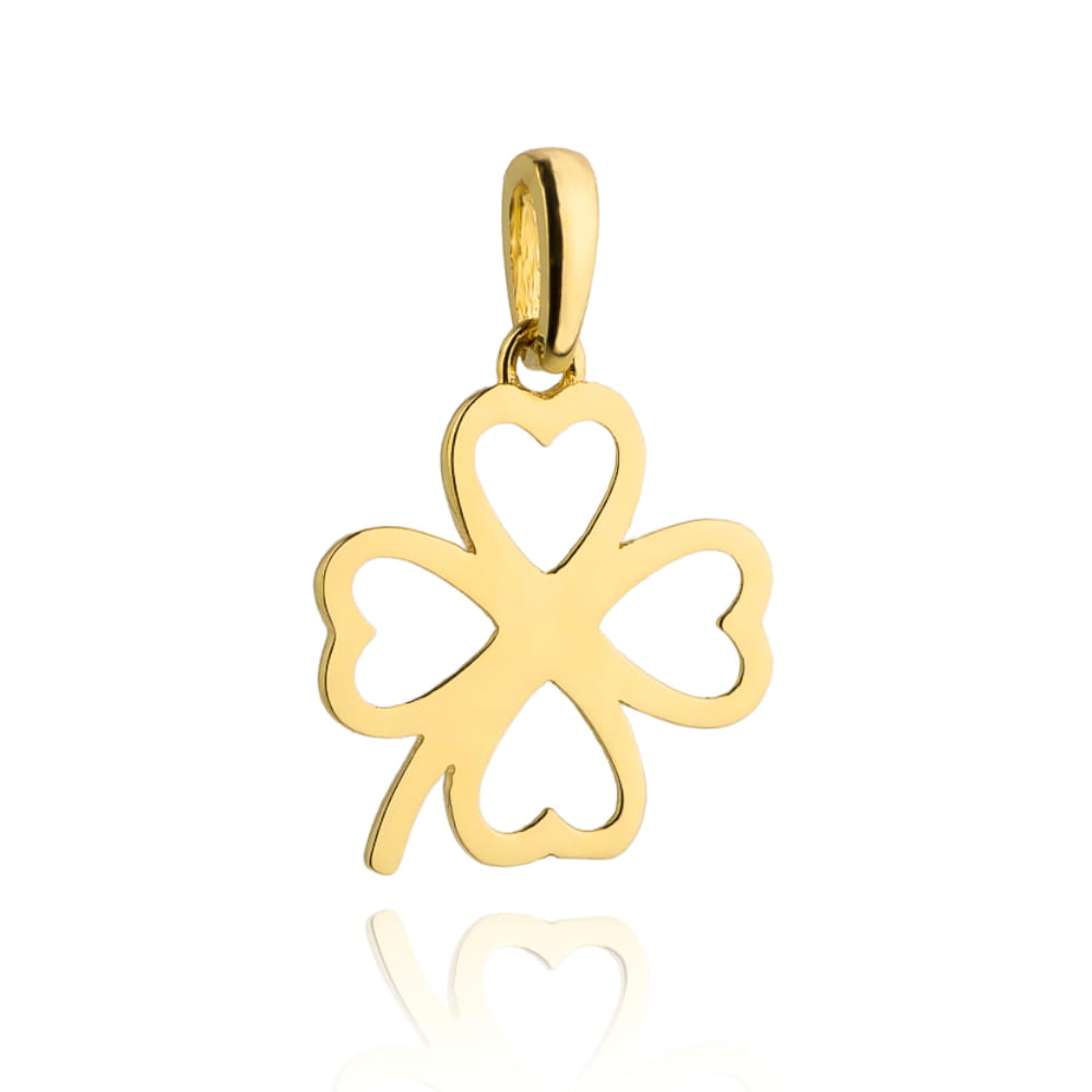 Elegancka zawieszka z złotej koniczynki, ozdobiona subtelnymi serduszkami, to idealny dodatek do każdej biżuterii. Dodaj jej wyjątkowego blasku i wyraź swoją miłość, wybierając tę unikalną ozdobę.