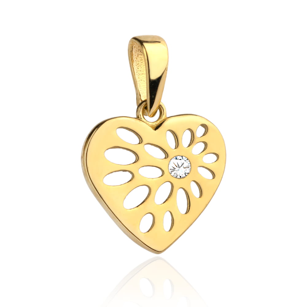 Zawieszka w kształcie serduszka z wykończonym złotem, ozdobiona delikatną cyrkonią, dodaje elegancji i romantycznego blasku każdemu naszyjnikowi. Idealna na prezent lub do codziennego noszenia, podkreśla wyjątkowy styl i subtelność Twojej biżuterii.