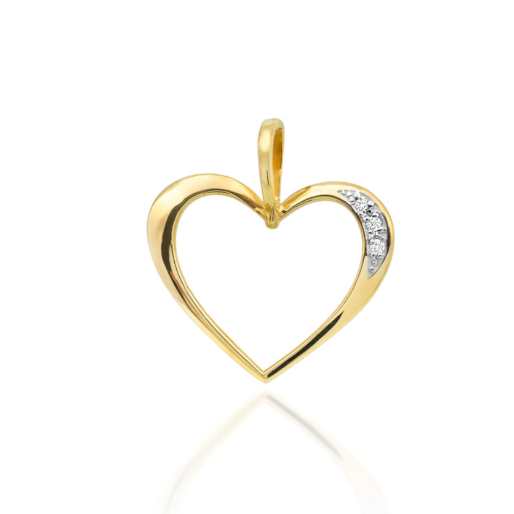 Zawieszka w złotym konturze serca, ozdobiona delikatnymi cyrkoniami, to subtelny akcent elegancji. Idealna na romantyczne okazje lub jako wyjątkowy prezent, podkreśli Twoją osobowość i doda blasku każdej stylizacji.
